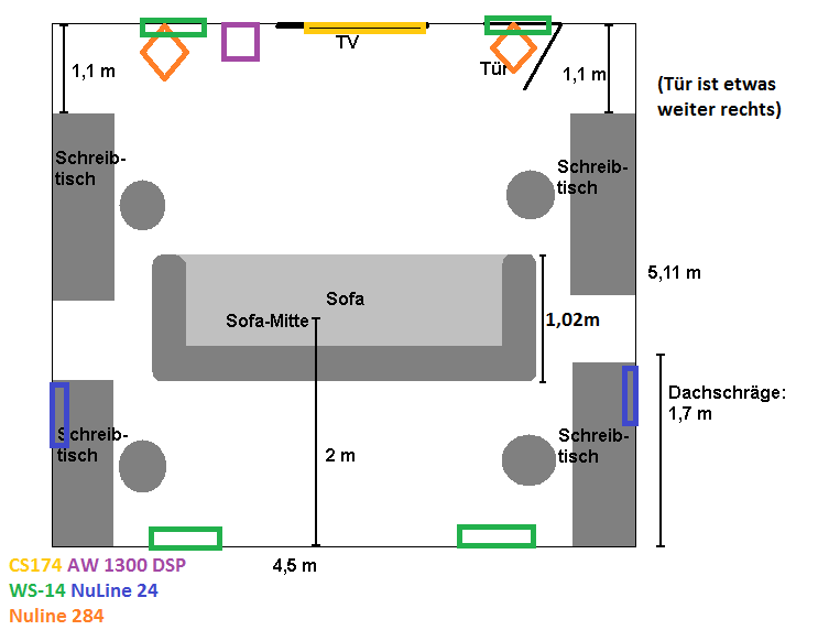 Und wieso denn der DSP-Subwoofer? Nimm 1-2 AW1100 und lass die Raum-Korrektur den AVR übernehmen.