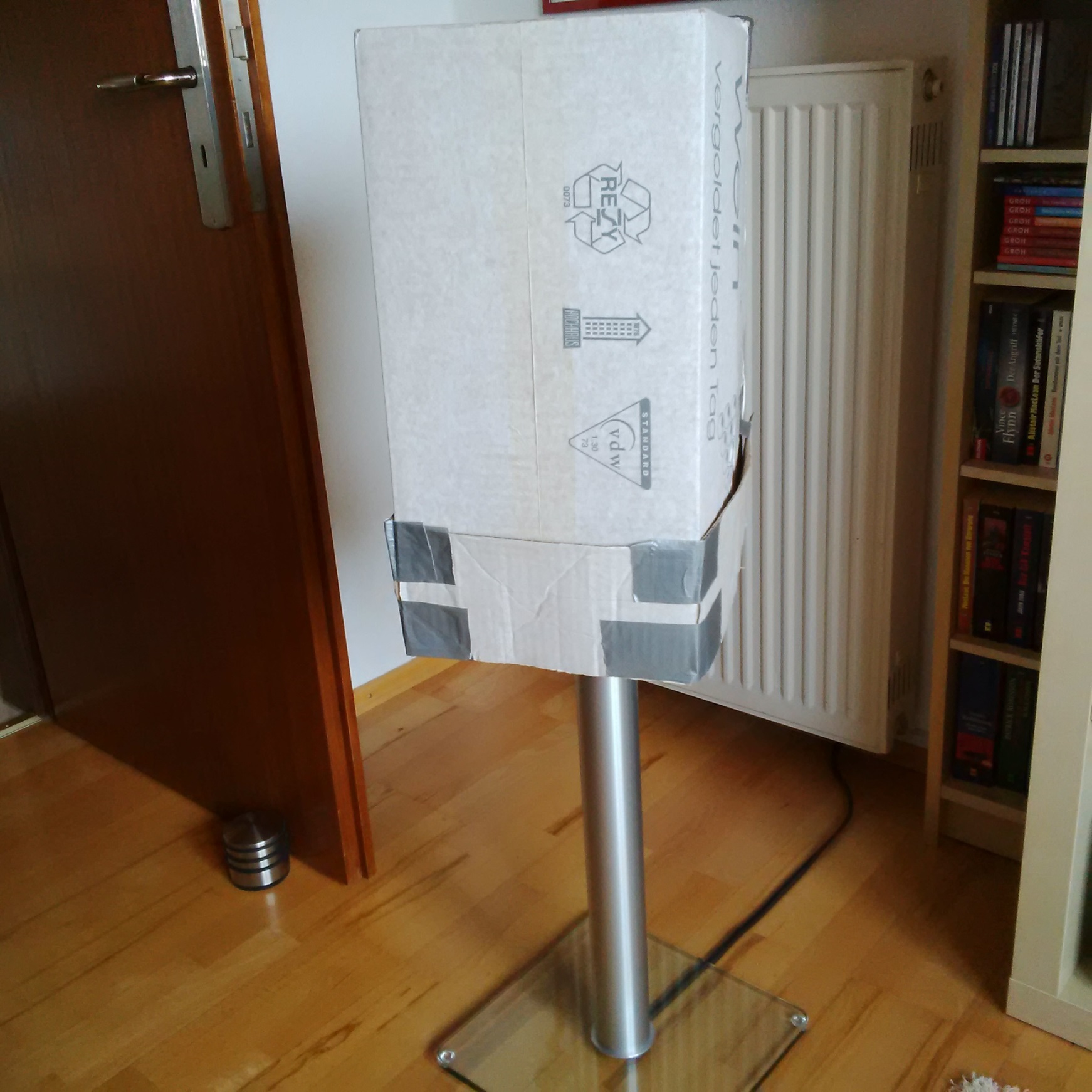 (leider bis jetzt nur aus karton). so wuchtig wie ich angenommen habe ist sie gar nicht. denk wenn dann werde ich hier auf die farbe weiß umsteigen. dann könnte es was werden. die gesamthöhe liegt hier bei 103 cm