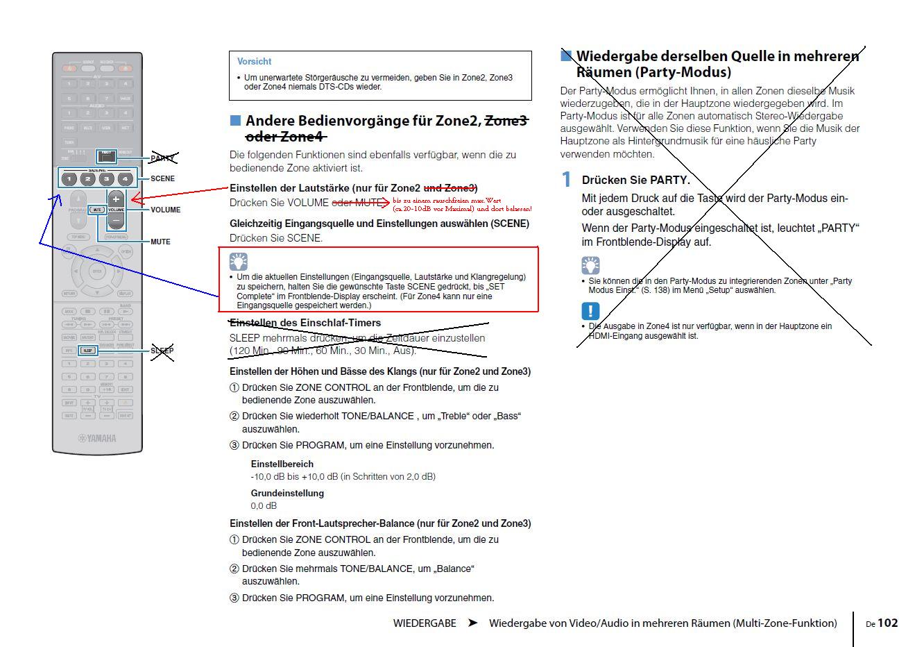 * bei Bedarf kann Zone2-Quelle & Pegel auch fest auf eine "SCENE"-Taste abgespeichert werden