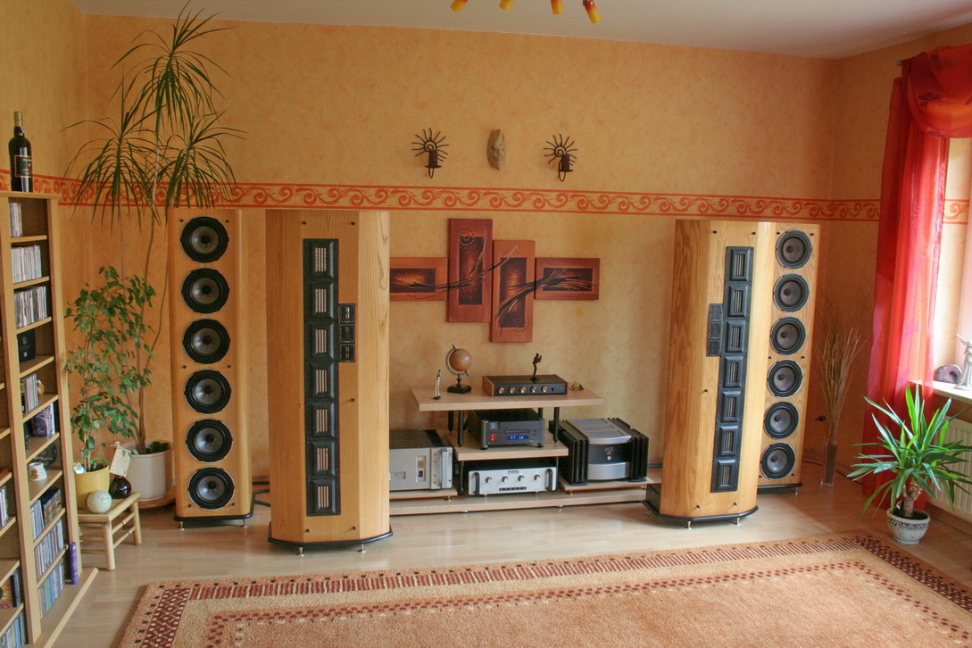 Erst einmal hatte ich die Infinity RS1 die ich sogar durch den 38er Heco noch erfolgreich unterstützt habe (der Raum ist halt nicht ganz unproblematisch, spricht auch für den Heco, das der den Job so gut gemacht hat, ist hier allerdings nicht zu sehen, war im hinteren Bereich aufgestellt)