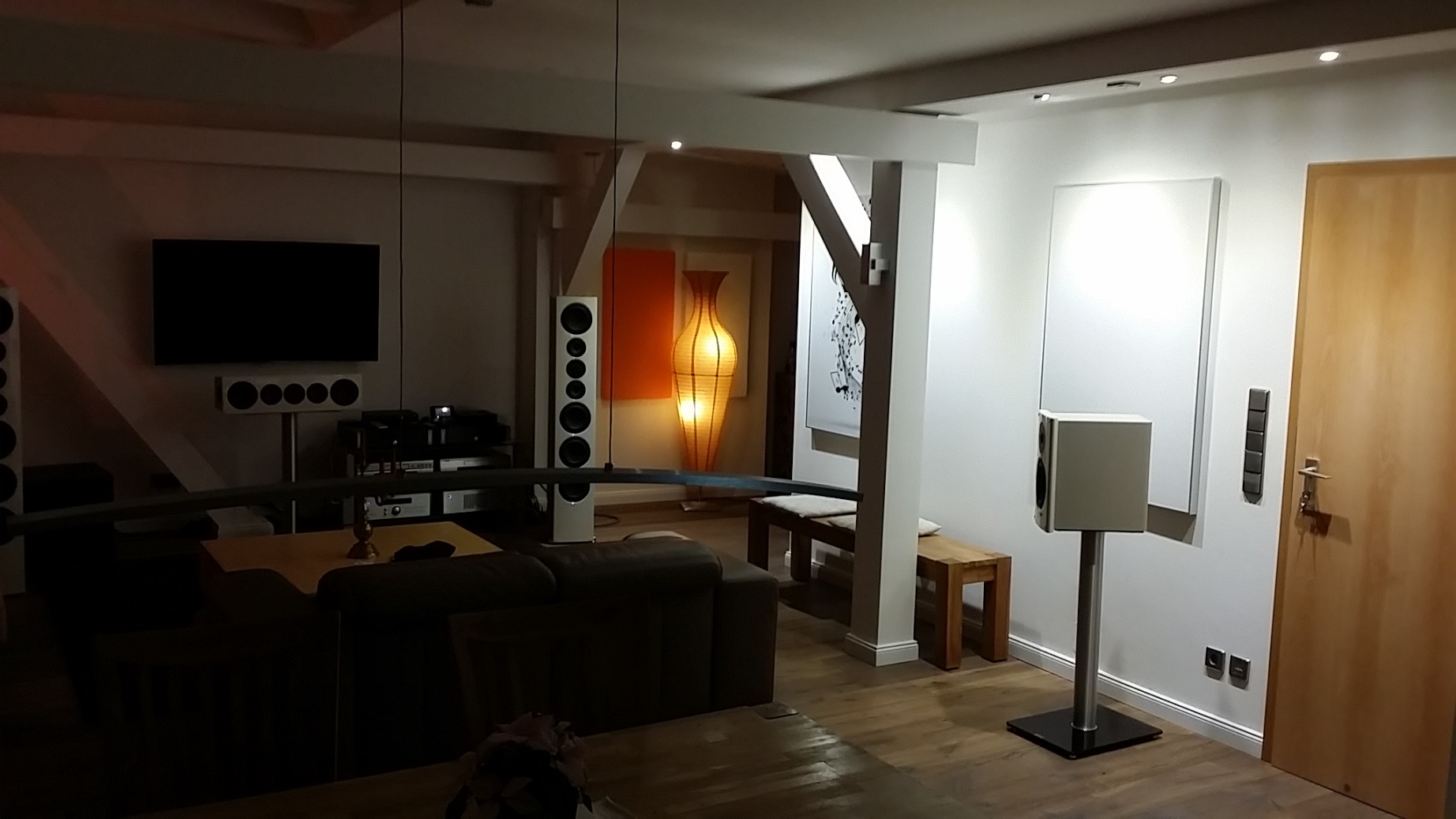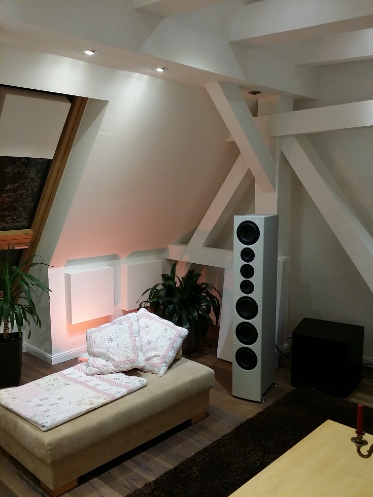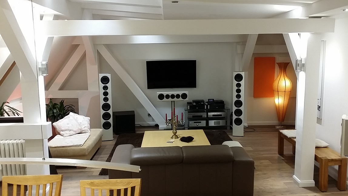 Einziges Problem was ich jetzt noch in den griff bekommen muss, ist die etwas unangenehme Wiedergabe bei hoher Lautstärke. Offensichtlich reichen hier die akustischen Maßnahmen im Bereich der Anlage nicht aus.Naturlich erlaubt meine Frau es nicht , den gesamten Raum mit Absorbern zu bepflastern.