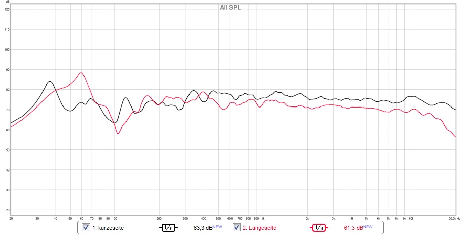 Ich habe heute ca 3 std. gemessen. Umgestellt. Hier ist die Messung Boxen an der lange Seite vs Boxen an der kurze Seite.