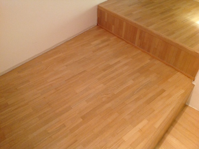 Aufgeklebt habe ich LS flatline auf Wandseite weiß nach vorne, auf Stiegenseite beige nach vorne.