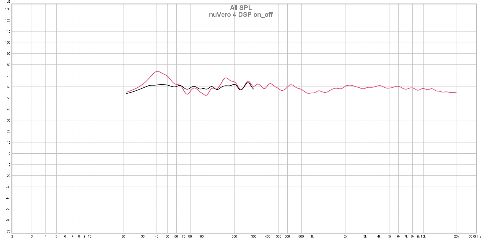 Bsp.: Gestern habe ich eine nuVero 4 ohne ATM gemessen, die linear bis 30 Hz spielte: