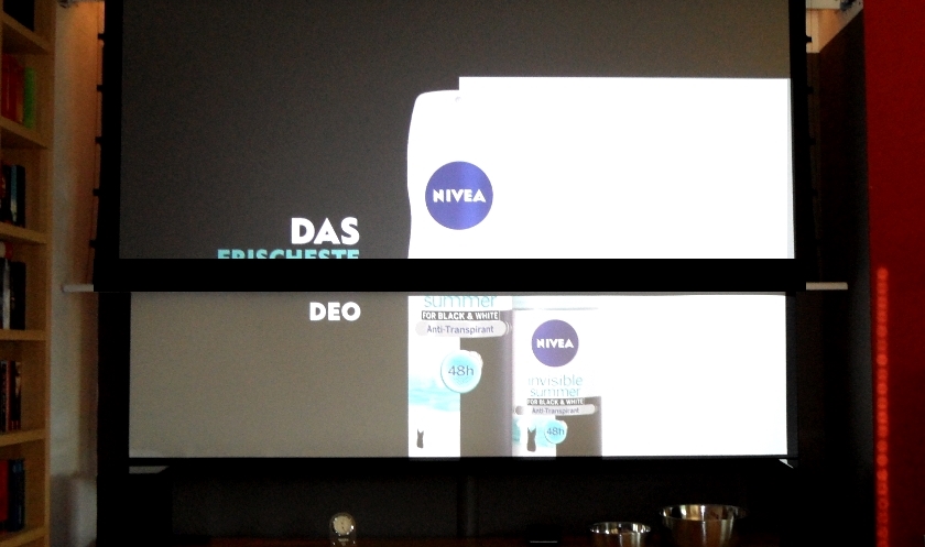 Oben ist die Cinegray 5D, unten meine normale, weisse Leinwand (ich habe ein Doppelleinwandsystem im WZ für alle Fälle).