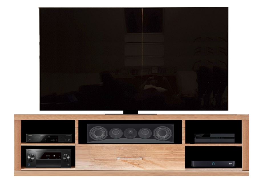 Neben dem mittigen Center, stellt auch immer ein ausreichend hohes Fach für den AV-Receiver am Markt ein Problem dar. Die ganzen Hersteller von uns entwickeln die Standard TV-Schränke irgendwie alle am Kunden vorbei.