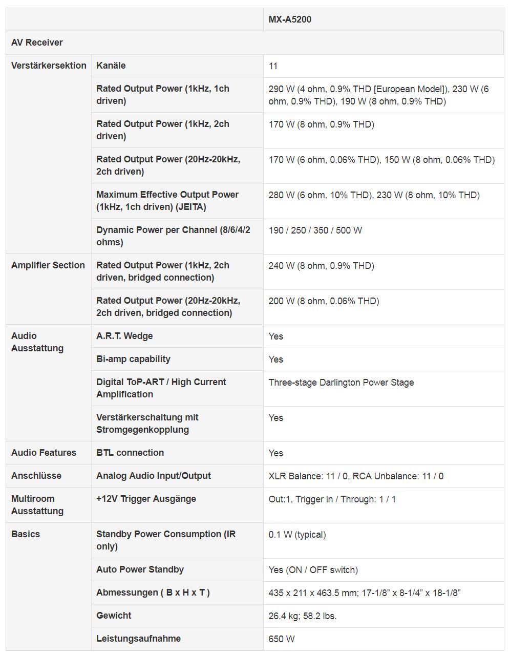 Hier mal die technischen Daten von der neuen Mehrkanal-Endstufe inkl. Bridge-Modus (evtl. enthält die BDA (noch nicht online) noch etwas detailliertere Parameter).
