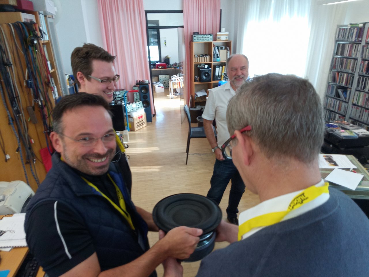 Das Programm entsprach dem der vorangegangenen drei Veranstaltungen: eine Audienz bei Herrn Nubert, Präsentationen verschiedener Boxen aus unserem Programm inklusive Einblicke in deren Entwicklung, eine Demonstration unseres Messraums, eine Tour durch das neue Nubert Hauptquartier sowie ein Mittagessen standen auf dem Stundenplan. Wer mochte, konnte außerdem in den Hörstudios in der Goethestraße seine Traumboxen hören und vergleichen.