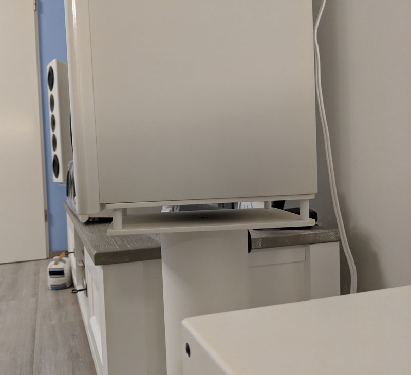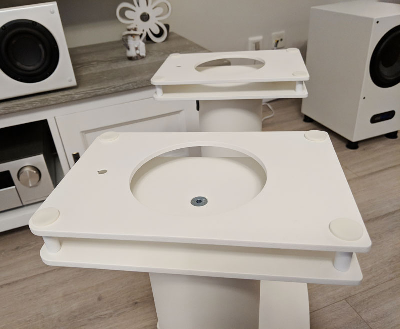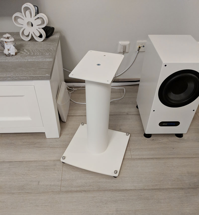 Durch die Stative wirkt es jetzt auch freier, man hat gefühlt nicht so eine Lautsprecherwand vor sich.