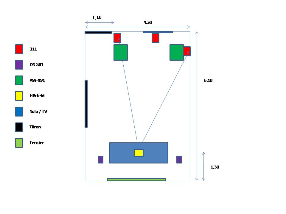 An dem Frontabstand arbeit ich wie gesagt noch, als Alternativ stell ich mir einen Sessel mittig in den Raum, (Action) Filme schau ich meist eh alleine und mit meiner Frau zusammen eh nur Komödien und das sehr leise, da ist es eh Banane.