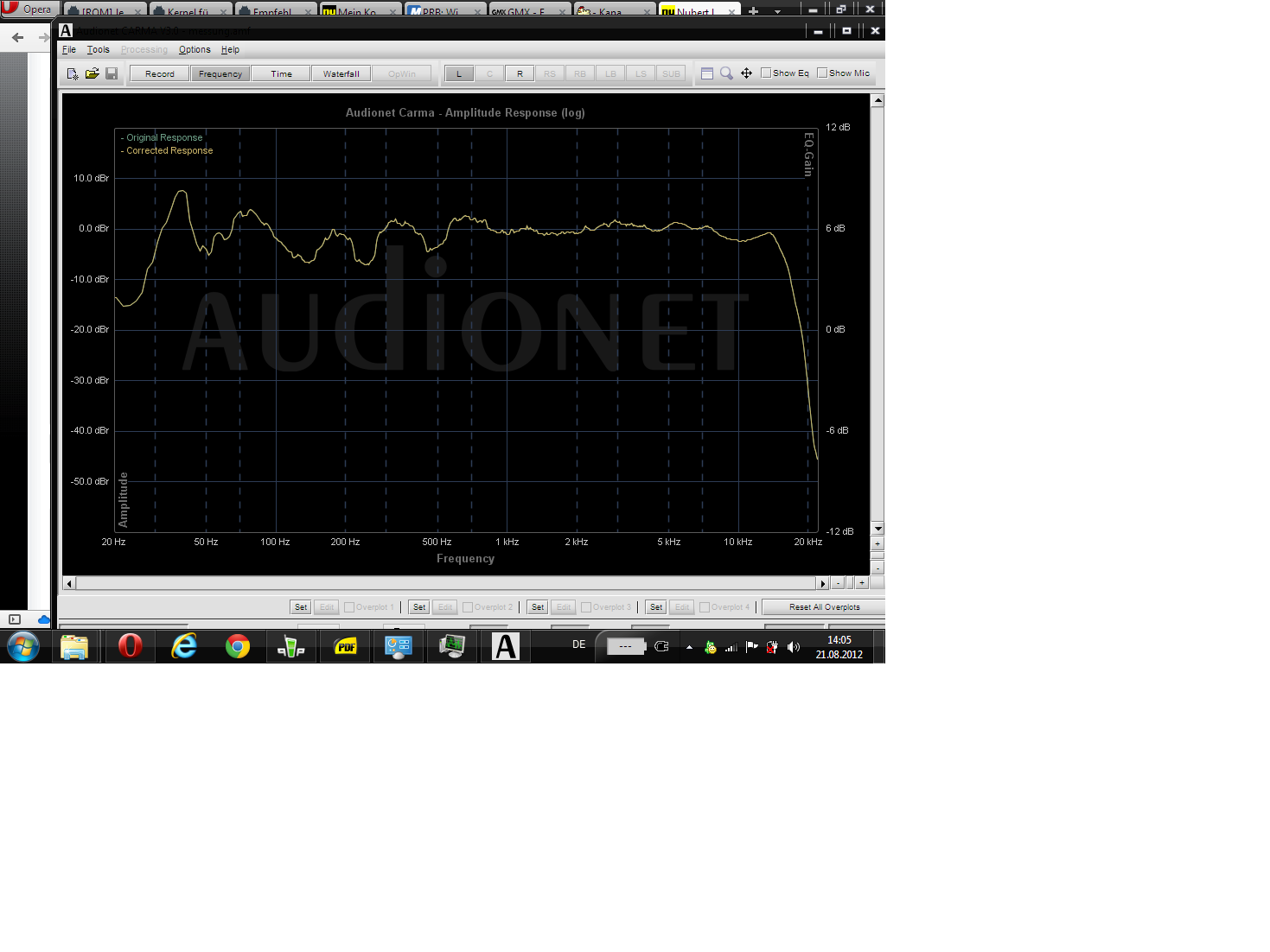 Damit kannst du den Pegelverlauf über den gesamten Frequenzbereich messen und auch die Dauer des Halls Pro Frequenz. Ich gehe davon aus dass dein Receiver ein Messmikro hat, dies kannst du für die Messungen benutzen.