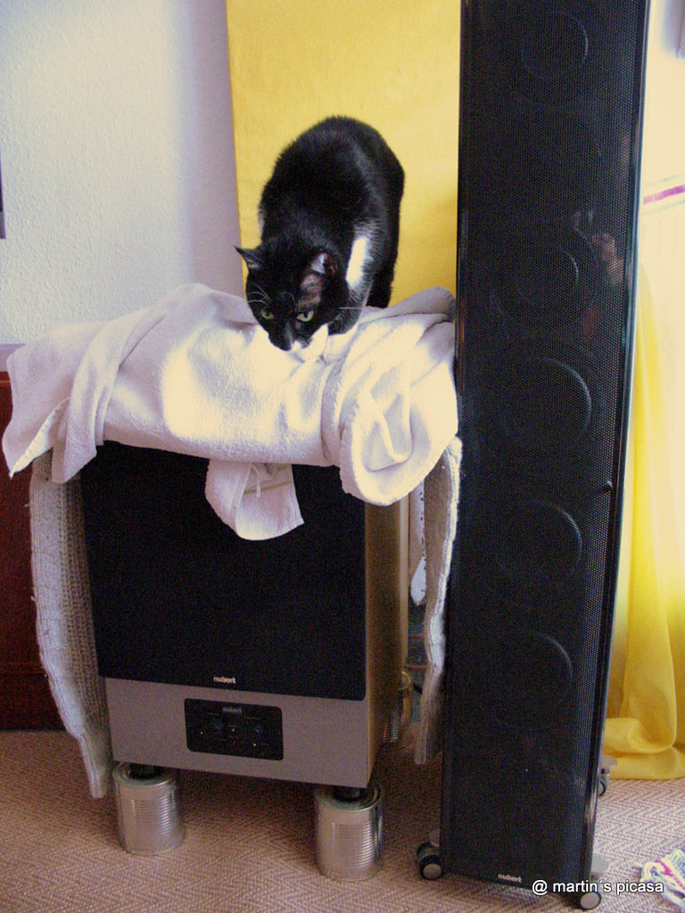 Wenn alles nichts hilft, das Schutzgitter unter Strom setzen (max 1mA bei Katzen) oder einen Maschendrahtzaun drum herum bauen. Oder man wartet, bis Nubert eine Lösung rausbringt: Den "nuBull", einen zertifizierten Pitbull, der die Boxen bewacht und die Katzen auf Abstand hält. Vielleicht kann man sowas aber auch elektronisch bauen: Einen von diesen selbstgesteuerten Staubsauern umbauen, mit Video und Signalverarbeitung ausstatten und mit einem cat-matcher prägen, der sich bei Annäherung des Tiers zwischen Katze und Box schiebt.