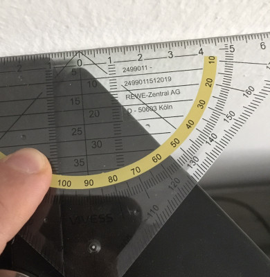 Das bringt mir 6 Grad mehr Winkel (Siehe Fotos) und die Führung hat nach vorne hin immer noch genügend Material - man könnte sicherlich noch auf insgesamt 1,5 cm verlängern ohne die Stabilität zu gefährden und würde dann bei 10 Grad mehr landen. Das kann ja schonmal nen Unterschied machen, grade an der Decke mit bisschen weiteren Projektionspunkt.