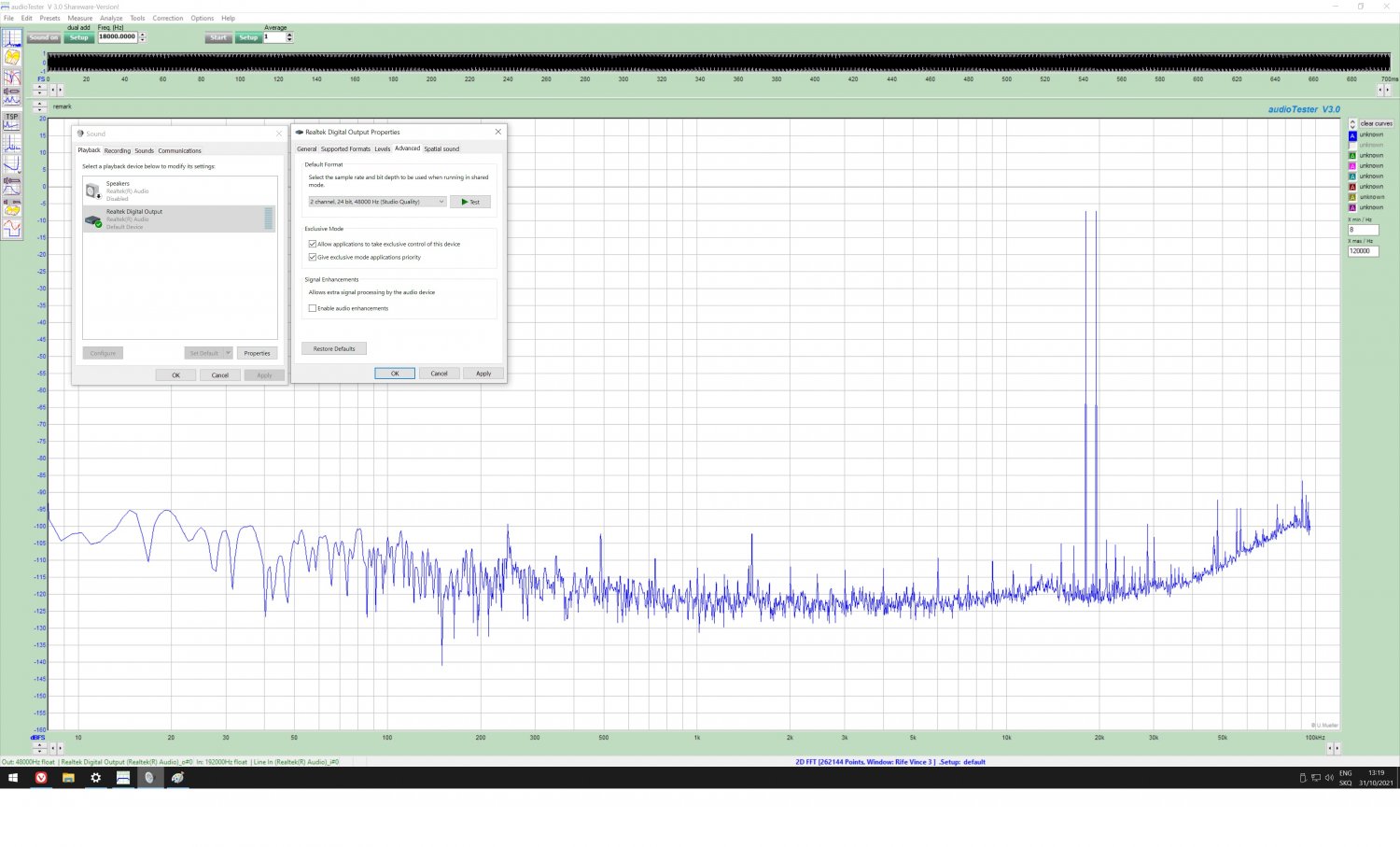 Windows hat einen grottigen Resampler, wenn man ihn überhaupt so nennen kann. Daher ist es ein fataler Fehler, Windows auf sagen wir 192 Khz zu stellen und dann aber 44,1 Khz Daten zu verwenden. Erst mal verhält sich Windows hier wie ein NOS-Filter und liefert ordentlich Spiegelfrequenzen, auch der angeschlossene Wandler denkt, dass er nun 192 Khz bekommt und stellt somit seine Roll-Off Filter auf den Bereich ein.