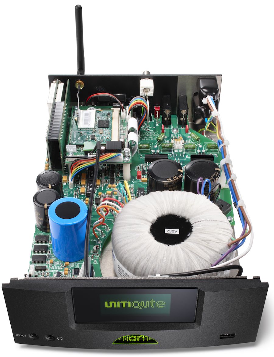 In der kleinen schwarzen "Black Box" vorne links ist ein Apple- Streamer verbaut (Apple TV?, bin nicht ganz sicher). Der technische Beitrag dieser "High End Schmiede" besteht aus dem Netzteil, noch nicht mal schön anzuschauen (!).