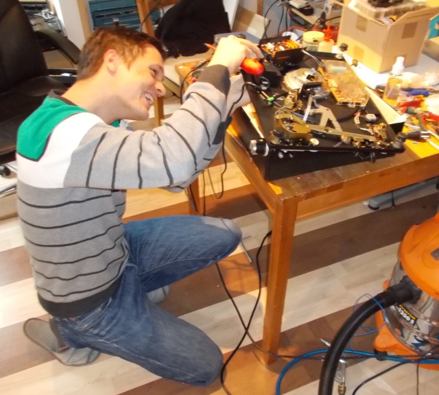 Paffi war heute da mit seinem 704. Dieser musste auf Cinch umgerüstet werden, die Knallfrösche mussten erneuert werden, technische Durchsicht war angesagt und dann wollte er die Platine unbedingt in eine soweit ich weiß 504 [Korrektur 505-4] Zarge einbauen. Dazu muss die Platine aufgebockt werden weil ansonsten das Netzteil am Boden aufsitzt und da dies leider nicht reichte mussten wir den Boden für das Netzteil ausschneiden um ein freies Schwingen der Platine zu gewährleisten. Insgesamt waren wir so 5 Stunden beschäftigt und ich muss sagen wir hatten richtig Spaß! Paffis Gesicht als ich die Stichsäge auspackte um die Zarge auszuschneiden, oder als ich Löcher in die Zarge bohrte um ein Schild anzubringen war schon ulkig