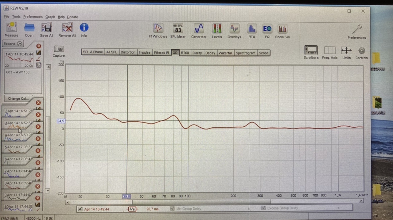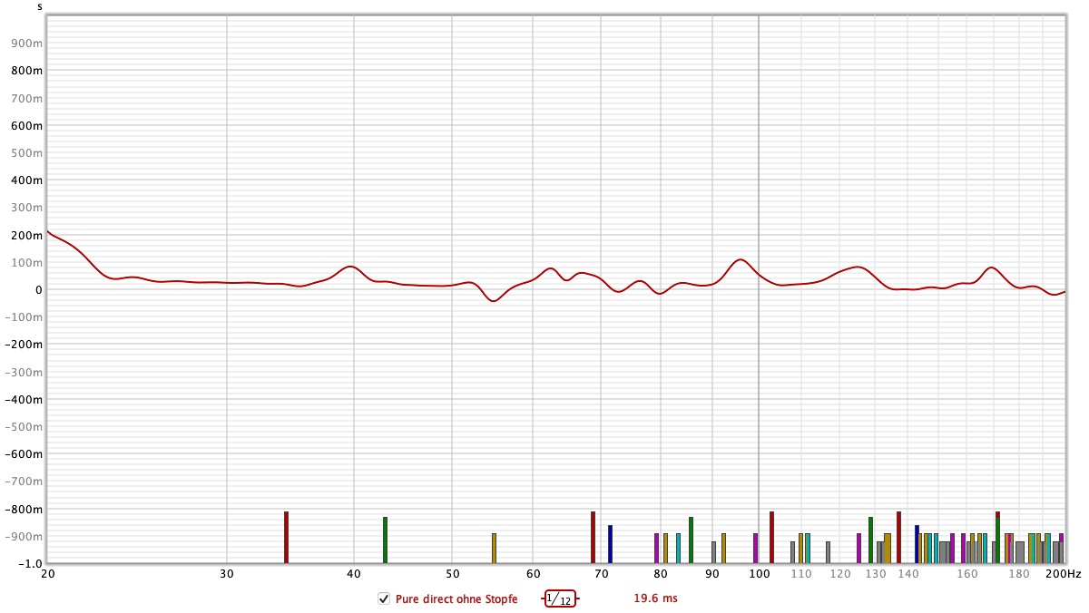 Deine Grafik. Ja, das wäre das, was man so auf den ersten Blick ablesen kann. Man sieht ja neben den Schwenkern den Trend des ansteigenden GDs zu tiefen Frequenzen hin. Das ist logisch, da eben jeder Filter (ob akustisch oder elektrisch) das GD erhöht. Bei einem BR Sub ist es eben ein Abfall von 24 db pro Oktave (plus ein eventueller Hochpass als Subsonicfilter) unter der Abstimmfrequenz.