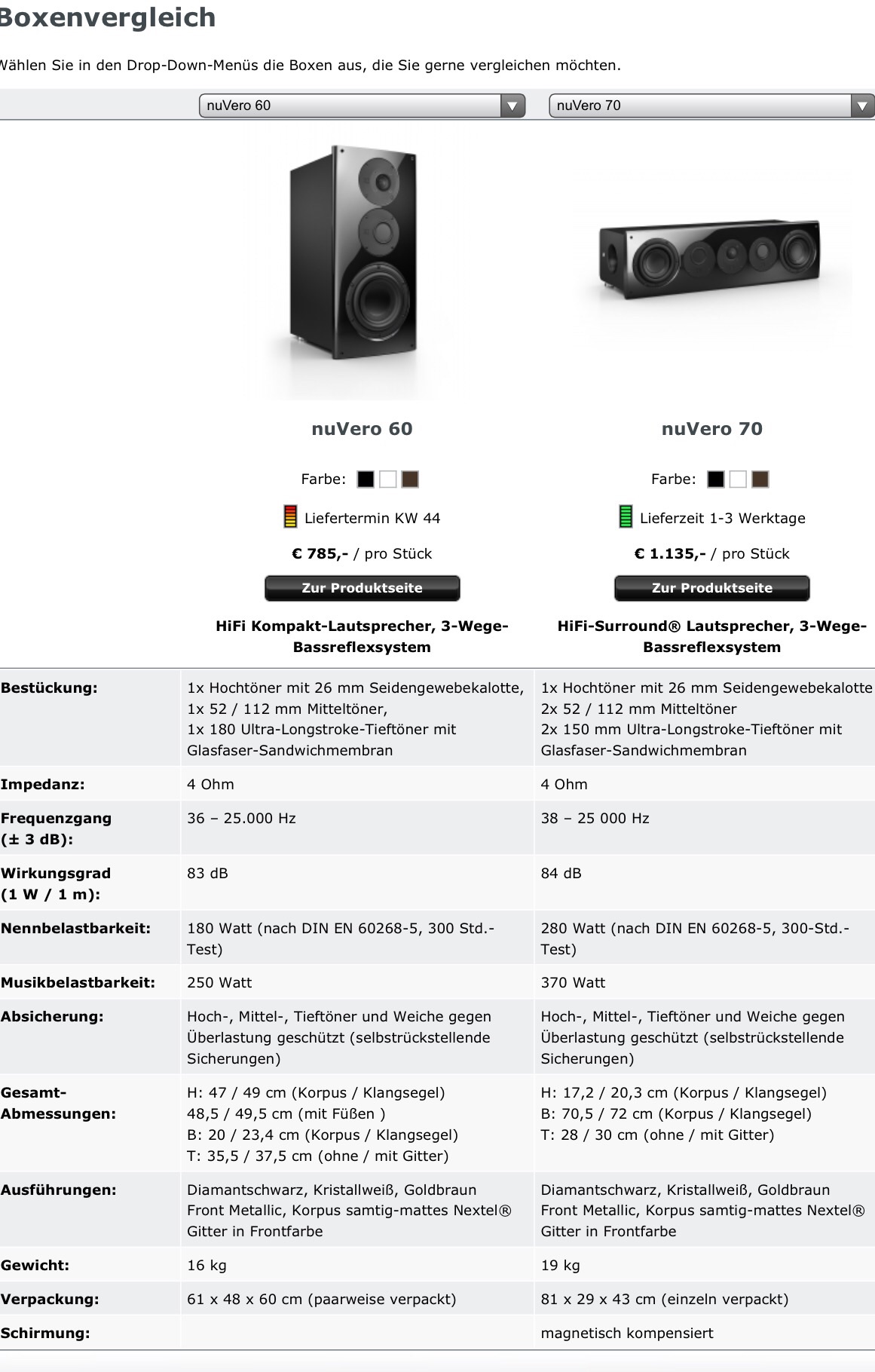 Tja, die 10 reißt da schon ein Loch auf. Aber Nubert hat sich für die 60 als Alternative bzw. indirekten Nachfolger entschieden.