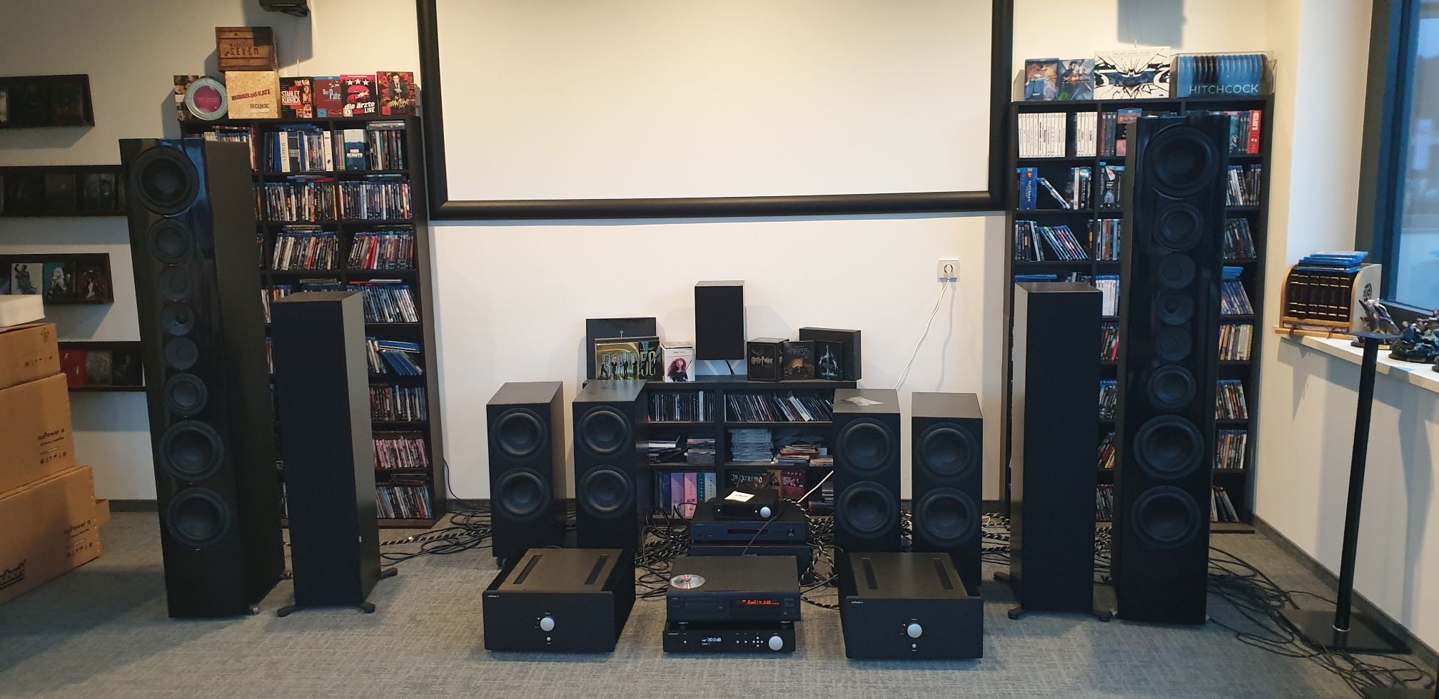 Betonart Arrivato, Cocktailaudio X-35, ATM 110, minidsp ddrc24 (Dirac), Boxem audio Endstufe (Purifi), Isotek Sirius, 4qm Basotect/Isobond, 12xGikAkustik 244, 4x Eckbassfallen, 2x PSI Audio AVAA, Revox S100&A100/P100, B100