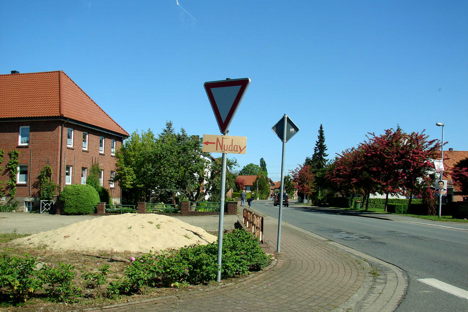 Meine Anreise mit tine+paul. Schon einige Kreuzungen vorher war der Nuday gut ausgeschildert. Das Foto entstand aus dem Auto heraus.