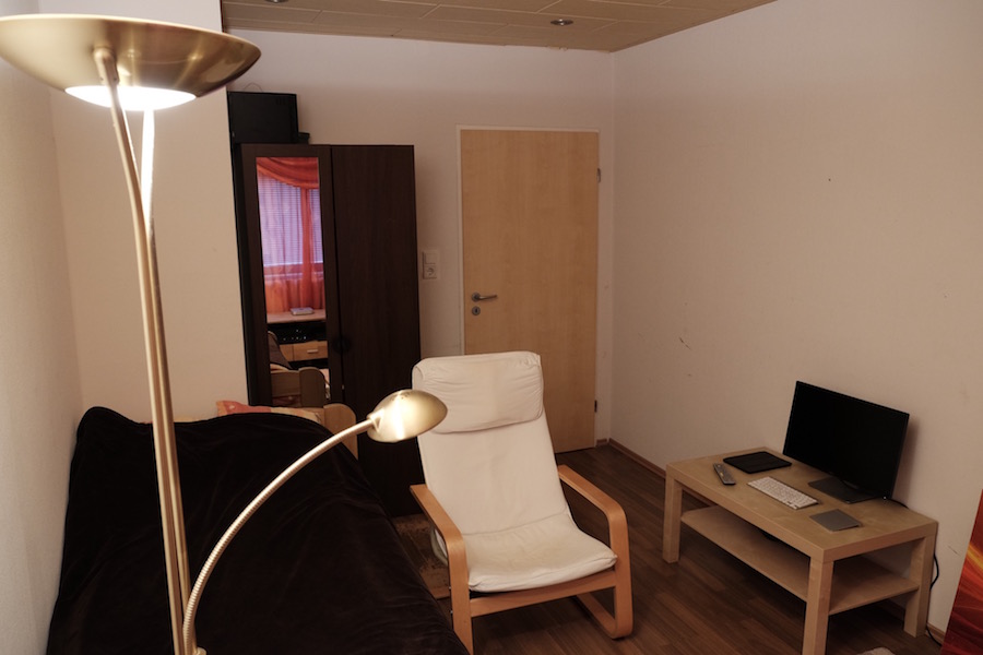 Rückseite, von dem Zimmer. Es war früher Kinderzimmer. Die Tapeten und laminat wird im Sommer erneut. Haben die Jungs ein bisschen versaut. Jetzt ist aber mein Musikzimmer und die Kinder haben ganze Etage :D