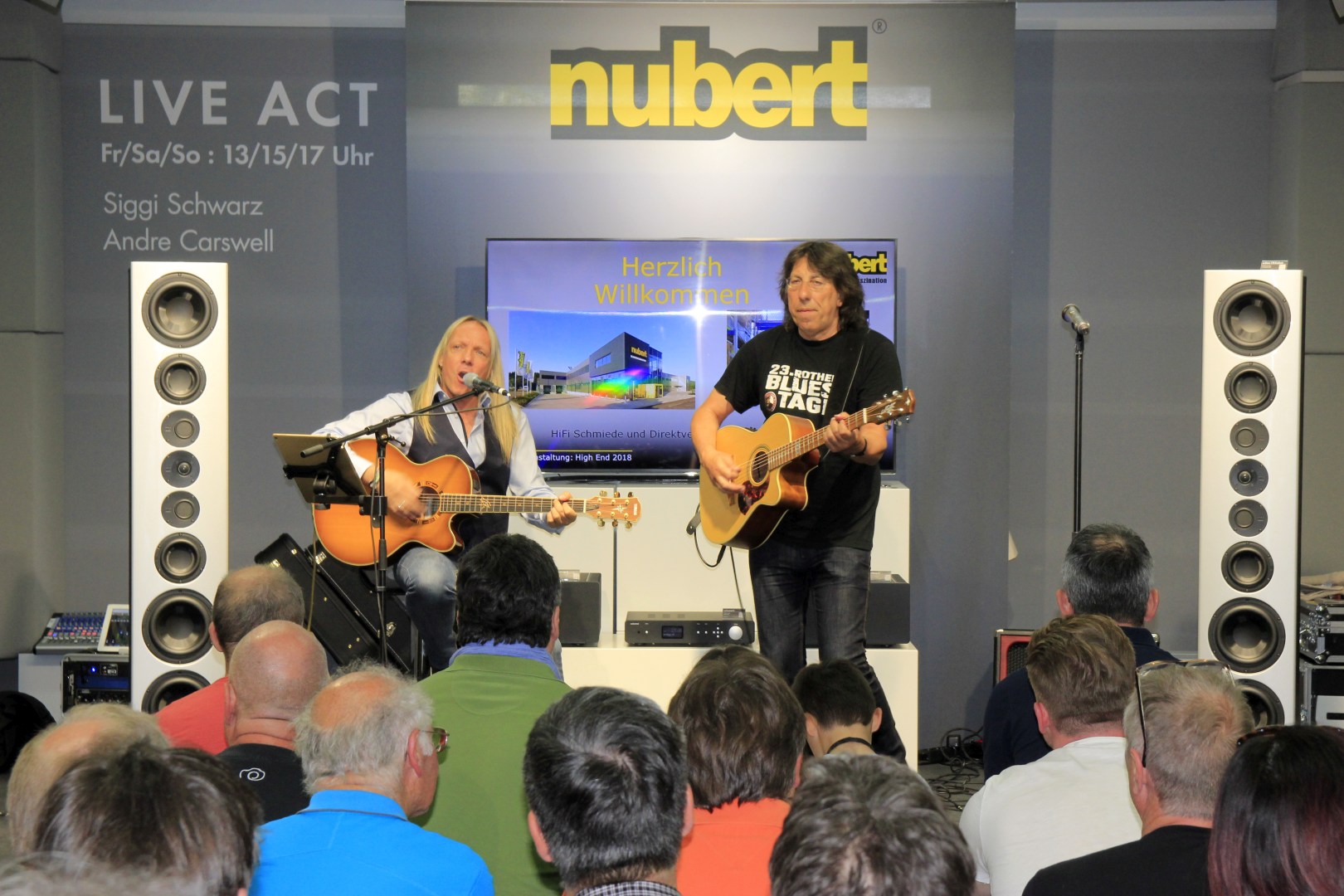 Schließlich dann noch der Auftritt von Siggi Schwarz und Tom Croel, die alte Rockklassiker zunächst auf zwei Akustiggitarren zum Besten gaben – mit dem NuVero-170-Setup als PA. Die hatten im Verein mit der doppelten Kraft zweier NuPower A keine Mühe, eine moderate Konzertlautstärke aufkommen zu lassen. Und schien mir bei der Live-Aufnahme von Max Mutzke die Stimme noch etwas spitz, war davon jetzt bei Tom Croel keine Spur mehr. Offenbar sind harte Singstimmen eher auf die Produktion zurückzuführen und nicht den Boxen anzulasten.