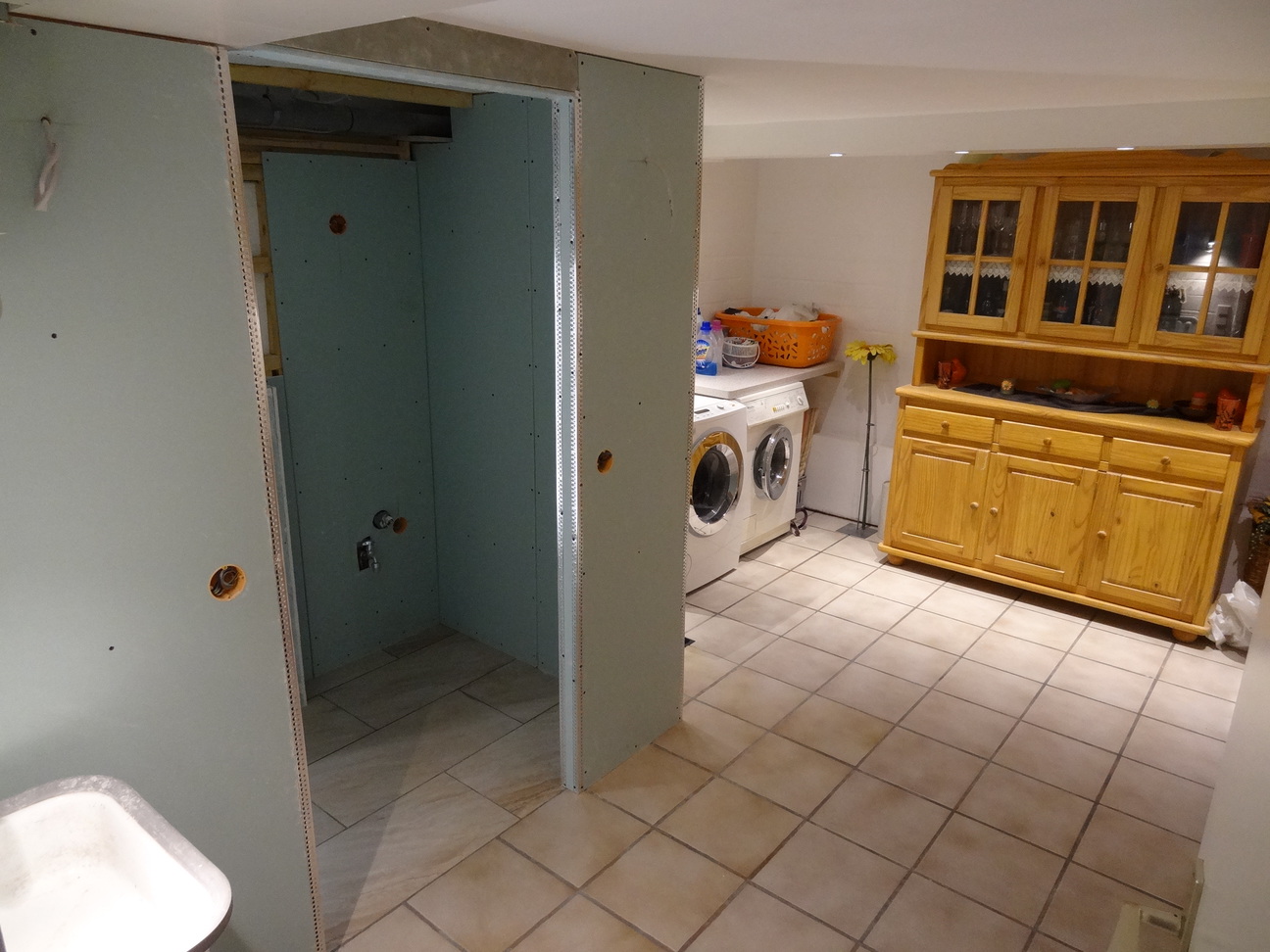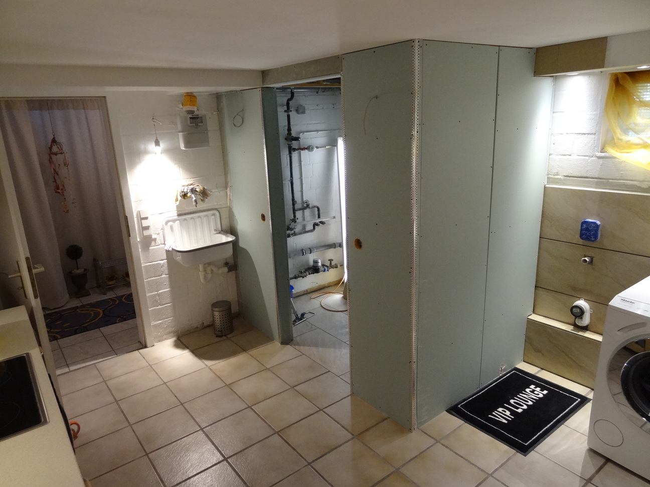 Um 17uhr war Feierabend , ich mache wieder Bilder , bald geht es an das Feingemachte und am nächsten Samstag kommt der Klempner und schließt das Urinal an.