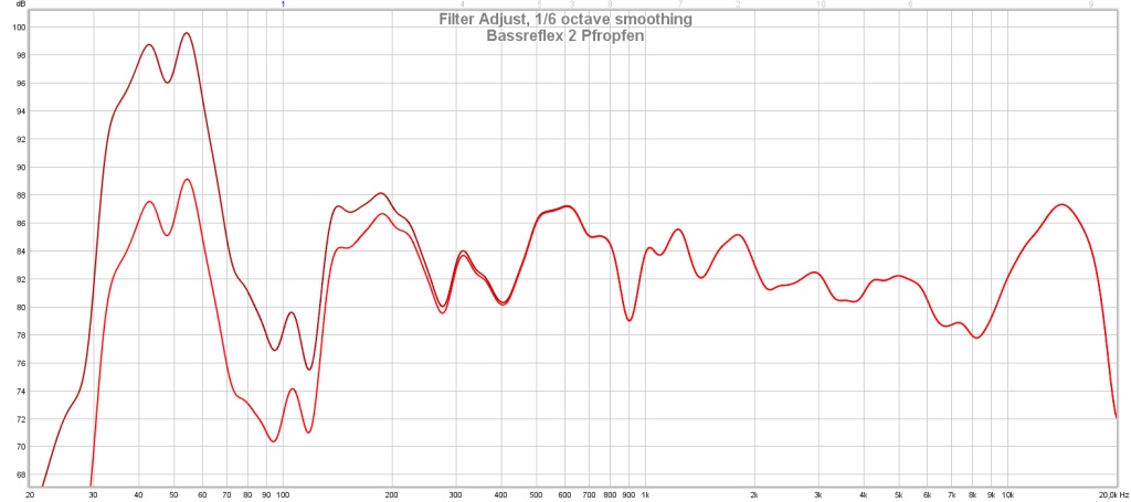Vom subjektiven Hören kann ich das nachvollziehen - auch bei mir hat Verschließen der BRR nicht ausreichend zur Problemlösung beigetragen. Mich irritiert aber die obige Abbildung - m.E. wirkt sich das nicht so in der Kurve aus, dass alles einfach nach unten verschoben wird. Das "Loch" kann durchaus etwas kleiner bzw. weniger tief werden, der Abfall zu den tiefen Frequenzen sollte weniger steil sein.