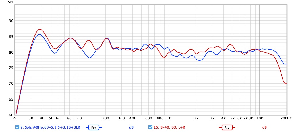 Ich habe mit REW mal ein paar Vergleichsmessungen durchgeführt. Die nuBoxxen stehen parallel zur Wand, die Solanos sind auf meine Schultern ausgerichtet. Ansonsten ist die Aufstellung identisch.