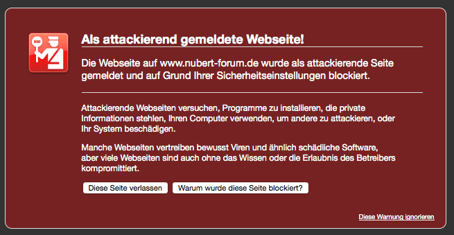Habe seit paar Stunden im Safari einen Malware-Hinweis, wenn ich ins Forum gehen will: