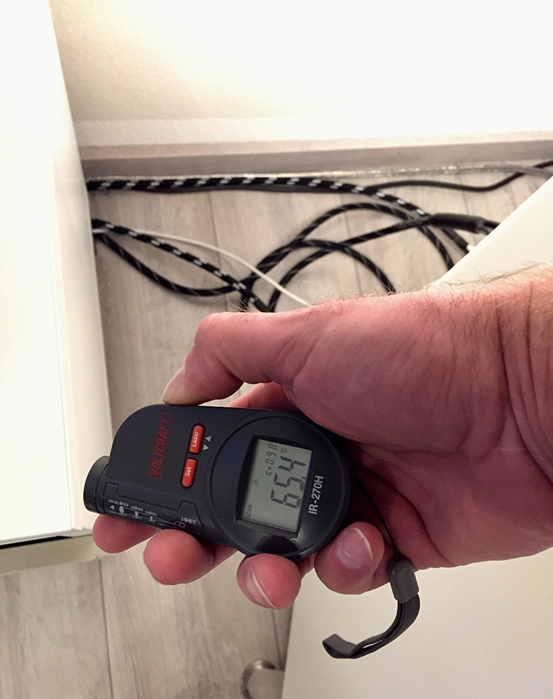 Gemessen habe ich mit 2 unterschiedlichen Infrarotthermometern, die beide unter 1 Grad unterschiedliche Ergebnisse geliefert haben.