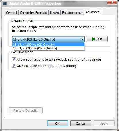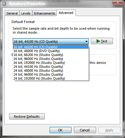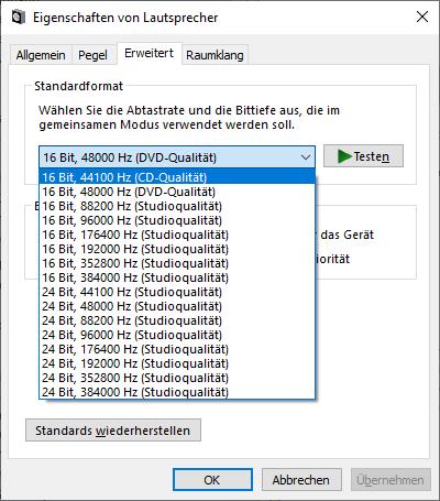 Eine etwas komplexere Möglichkeit ist ein virtuellen Soundkartentreiber, der alle nicht unterstützten Abtastraten automatisch resampelt und sich zwischen Soundkarten-API und System hängt. Vertreter dieser Art von Software ist z.B. APO Equalizer.