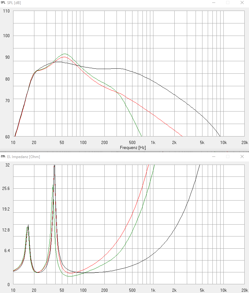 Und bei welchen Frequenzen wirkt sich dies dann aus, ist hier der Zusammenhang zwischen Schwingspule, Magnet zu erkennen (Größe), welche auch die Induktivität "bestimmt".