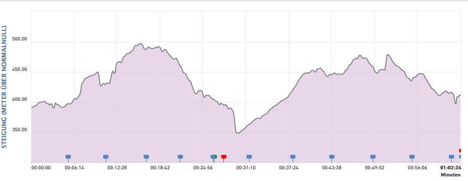 Nicht viel mehr bei diesem Streckenprofil. Da werde ich vielleicht höchstens um 1 km/h (eher 0,5 km/h) schneller, aber das ist schon sehr optimistisch geschätzt.CarlTheodor hat geschrieben:Wenn das nach langer Abstinenz Deine Einstiegszeit bei gleichzeitig 400 Höhenmetern ist, dann möchte ich nicht wissen, was Du in Topform für Zeiten zauberst. Alle Achtung!!! Ich kann sagen, dass ich nach fast einem Jahr kontinuierlichem Training eher langsamer bin.jottlieb hat geschrieben:Nach langer Abstizenz wollte ich's am Samstag wissen und hab die letzten Sonnenstrahlen über Mittag genutzt, musste dann aber nach 11,3 km (in 1:02 Stunden:Minuten) abbrechen. Mit über 400 Höhenmeter war's dann einfach zu viel und etwas zu warm angezogen war ich auch.