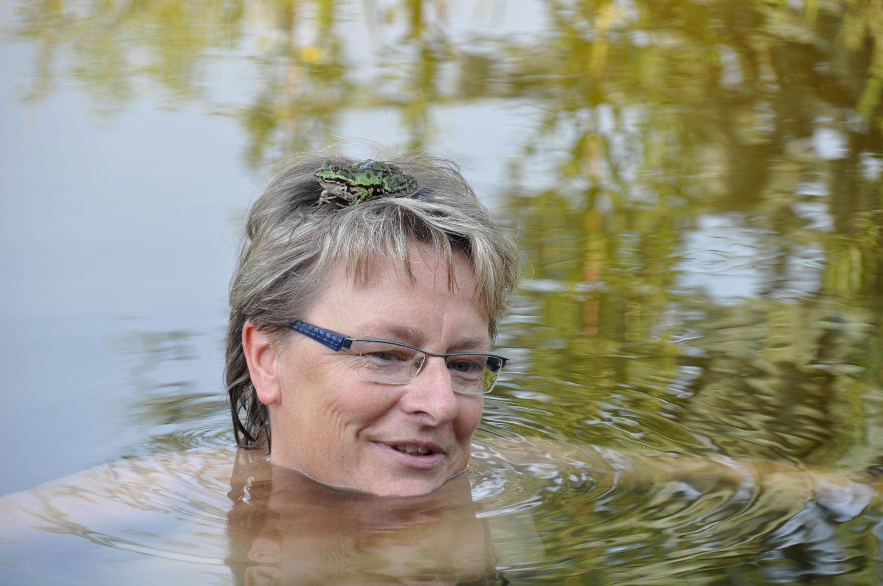 hier mal etwas von unserem Teich und der Froschkönigin.