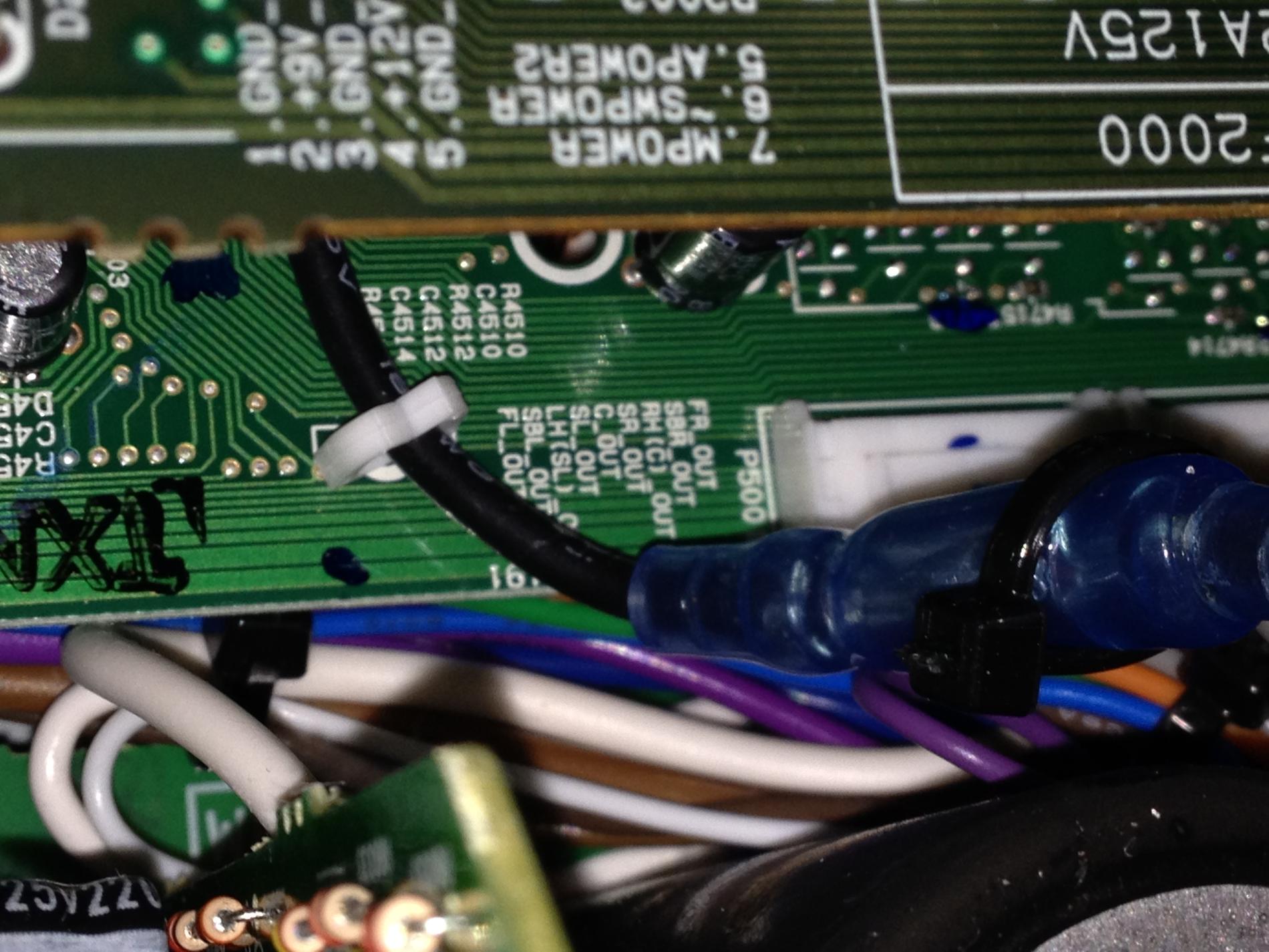 An der internen Kanalbeschriftung (Übergabestecker Vor-Endstufe / siehe Bild) steht verwirrender weise "RH (C)" und "LH (SL)", obwohl die Kanäle "C" und "SL" ja auch nochmal separat existieren. Möglicherweise werden die je nach Setup unterschiedlich angesteuert.