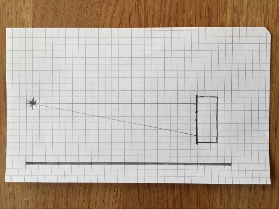 Beispiel mit St-7 Stativ. Höhe 57cm, plus halben Korpus 35,25cm ergibt ca 92cm Höhe HT für mittlere Achse. Alle Chassis haben geradezu den gleichen abstand zur HP und treffen somit Zeitgleich ein.