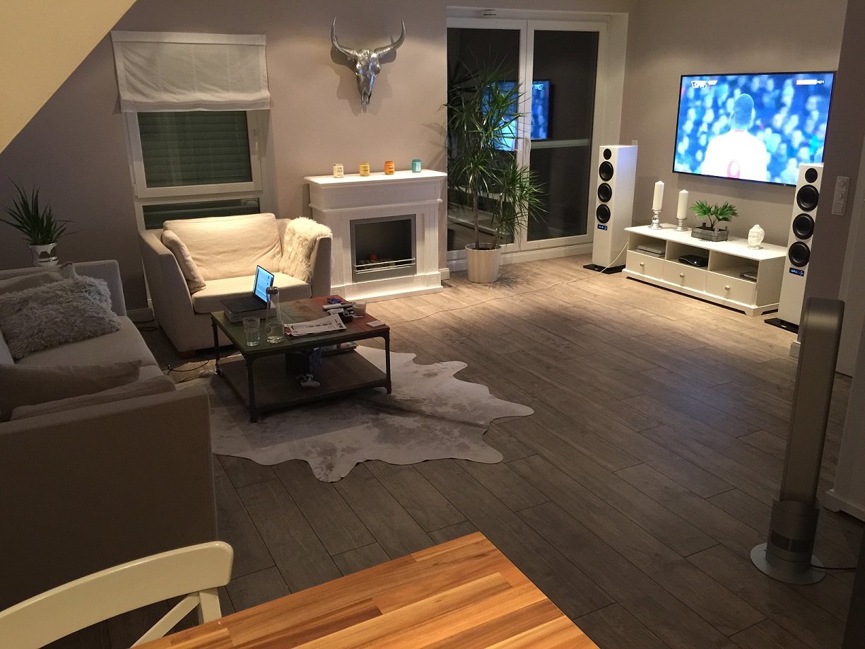 Hast du schon einmal versucht, zum reinen Musikhören dich einmal in die Mitte des Raums zu setzen, damit du ein möglichst gleichmäßiges Stereodreieck hast?