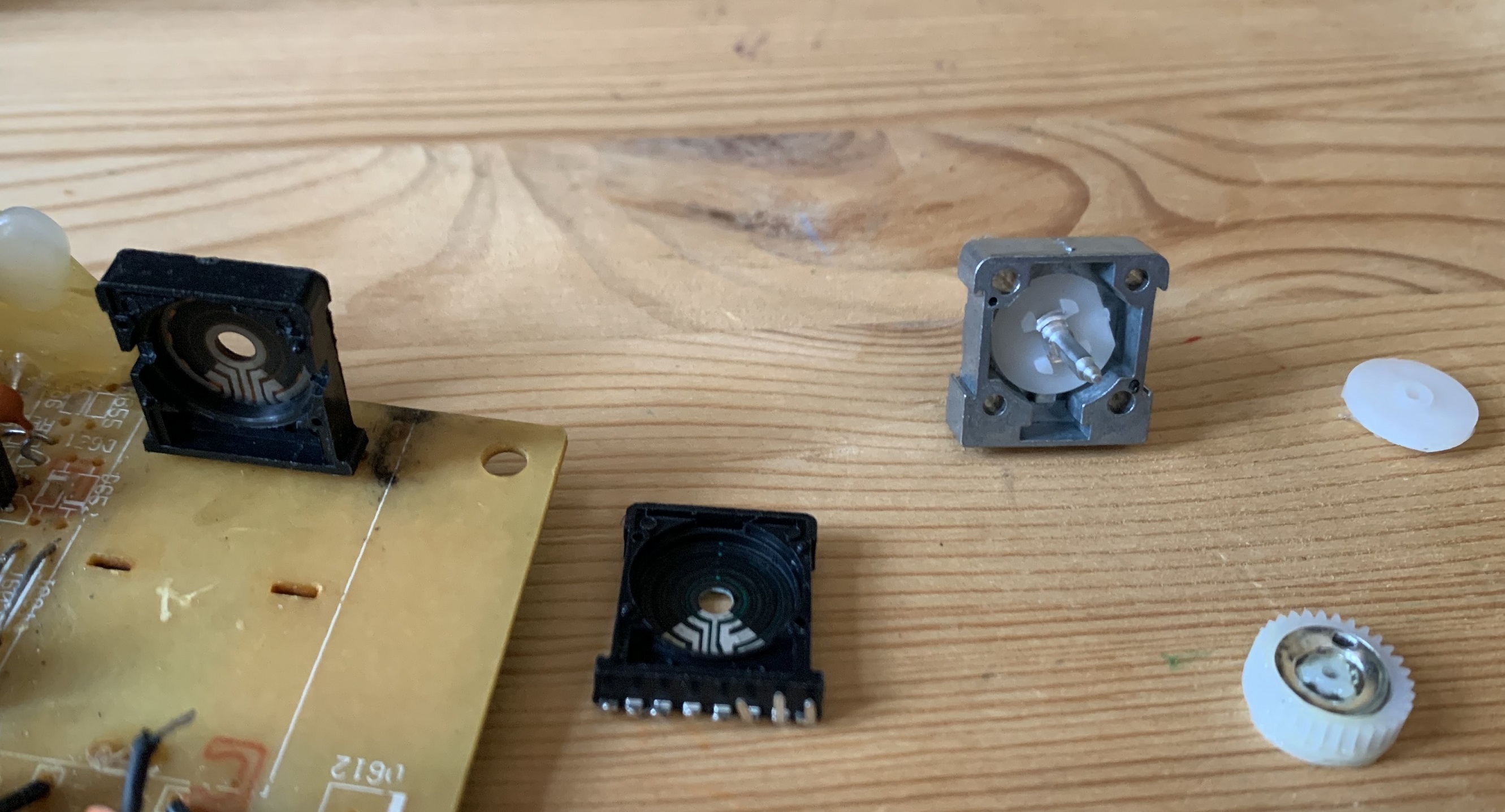 Leider Sind die Potiachsen bei mir noch etwas zu lang gewesen, sodass ich etwas kürzen musste. Der Rest passt aber 1 zu 1 zusammen. Dann wieder alles Liebevoll mit Heißkleber zukleistern, damit alles wieder original aussieht und vor allem Luftdicht ist!