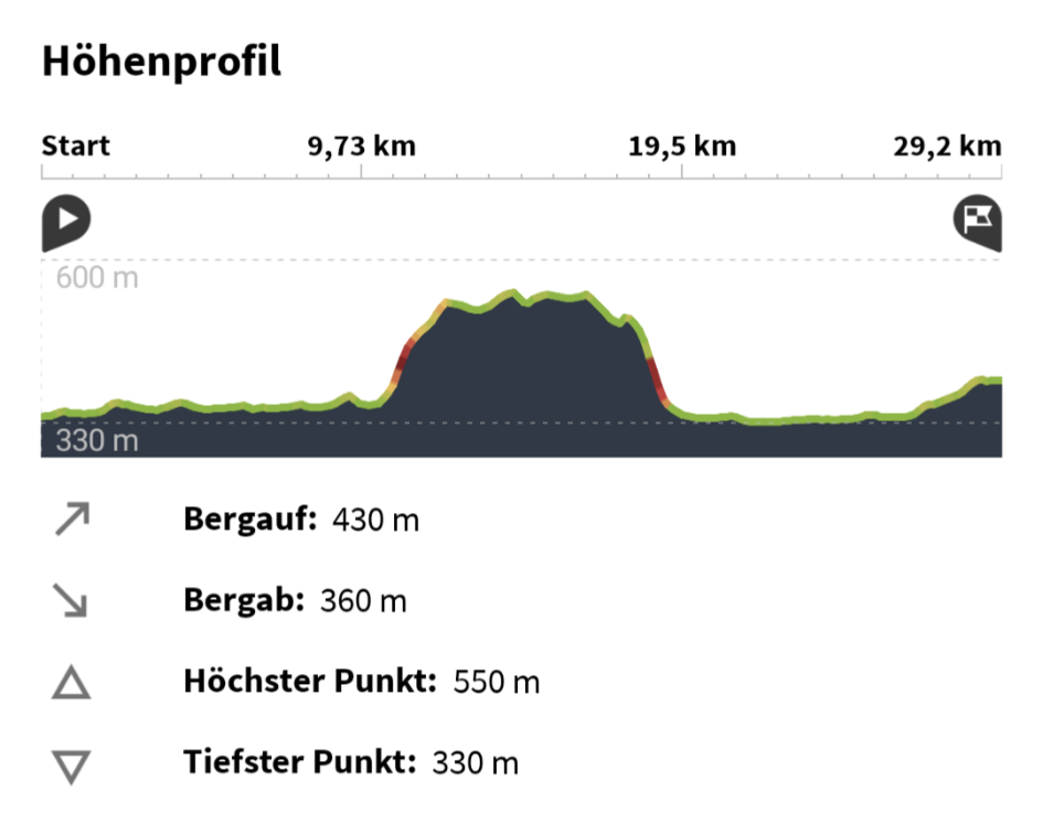 Der Touranfang fehlt in der Aufzeichnung, weil sich Komoot gerne mal verschluckt, wenn sich Hin- und Rückweg kreuzen. Bei den Rampen haben wir auch bergab teilweise geschoben - zu heftig für die Nerven der Stokerin und zu heftig für die Bremsen.