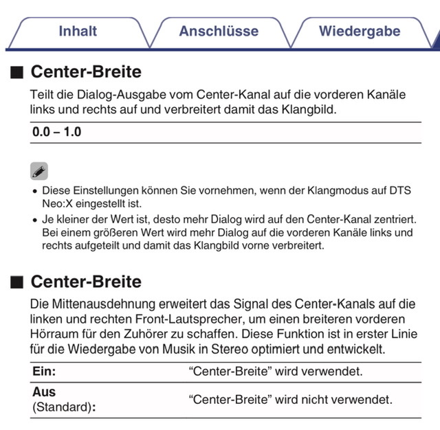 Was ist denn mit "Center Spread" gemeint? Ist das so eine Art "Balance" zwischen dem Center und den beiden Front-LS, wenn der Center nicht exakt mittig steht?
