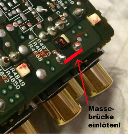 ...denn den L+R-PreOut-Cinchbuchsen fehlte die wichtige Masseverbindung