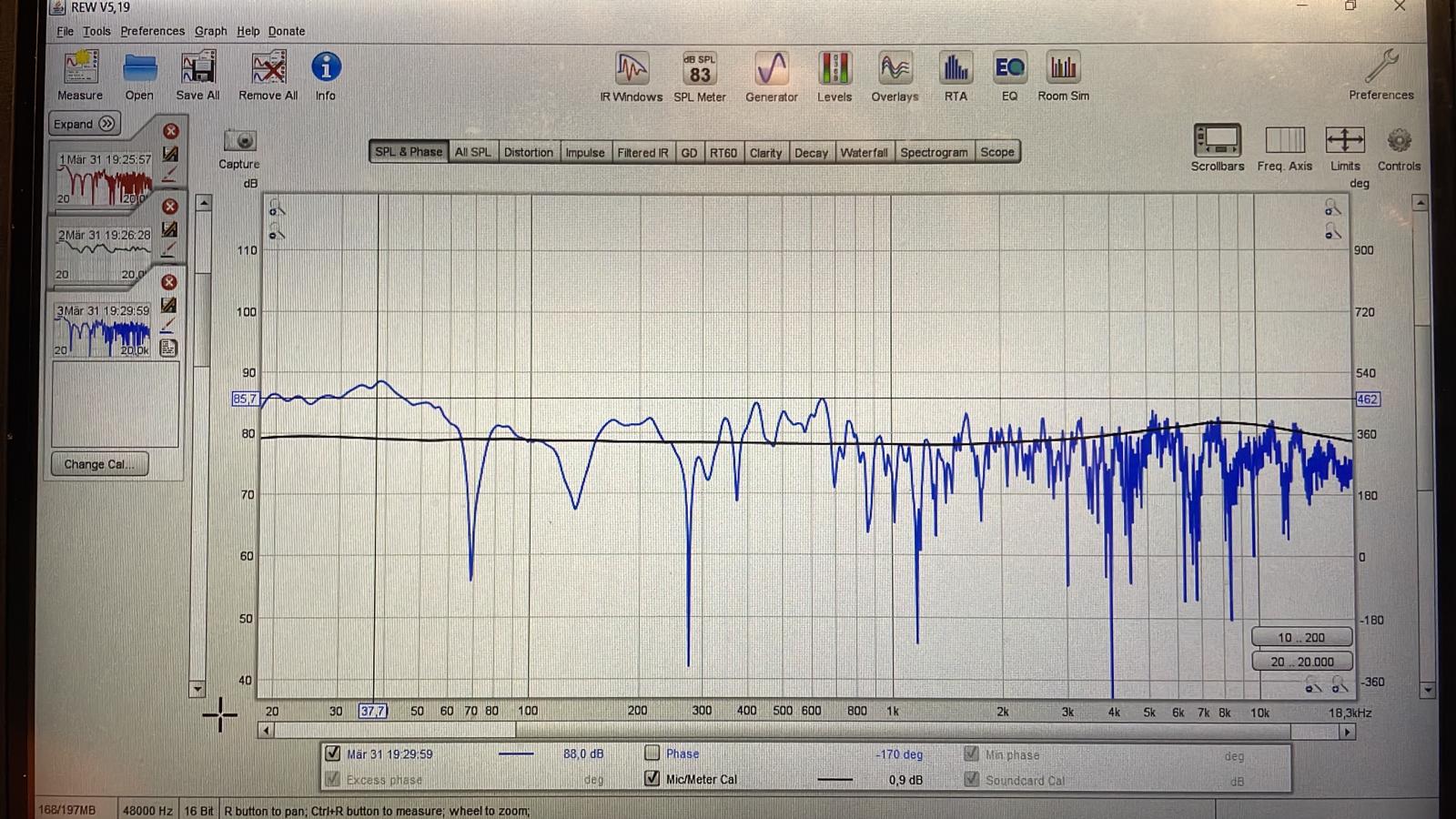 Ich verstehe deine Frequenzgangmessung nicht. Ist die blaue Linie mit Dämmung, die grün/orange ohne? Die Kurven sind ja gleich, die eine ist insgesamt nur etwas leiser...