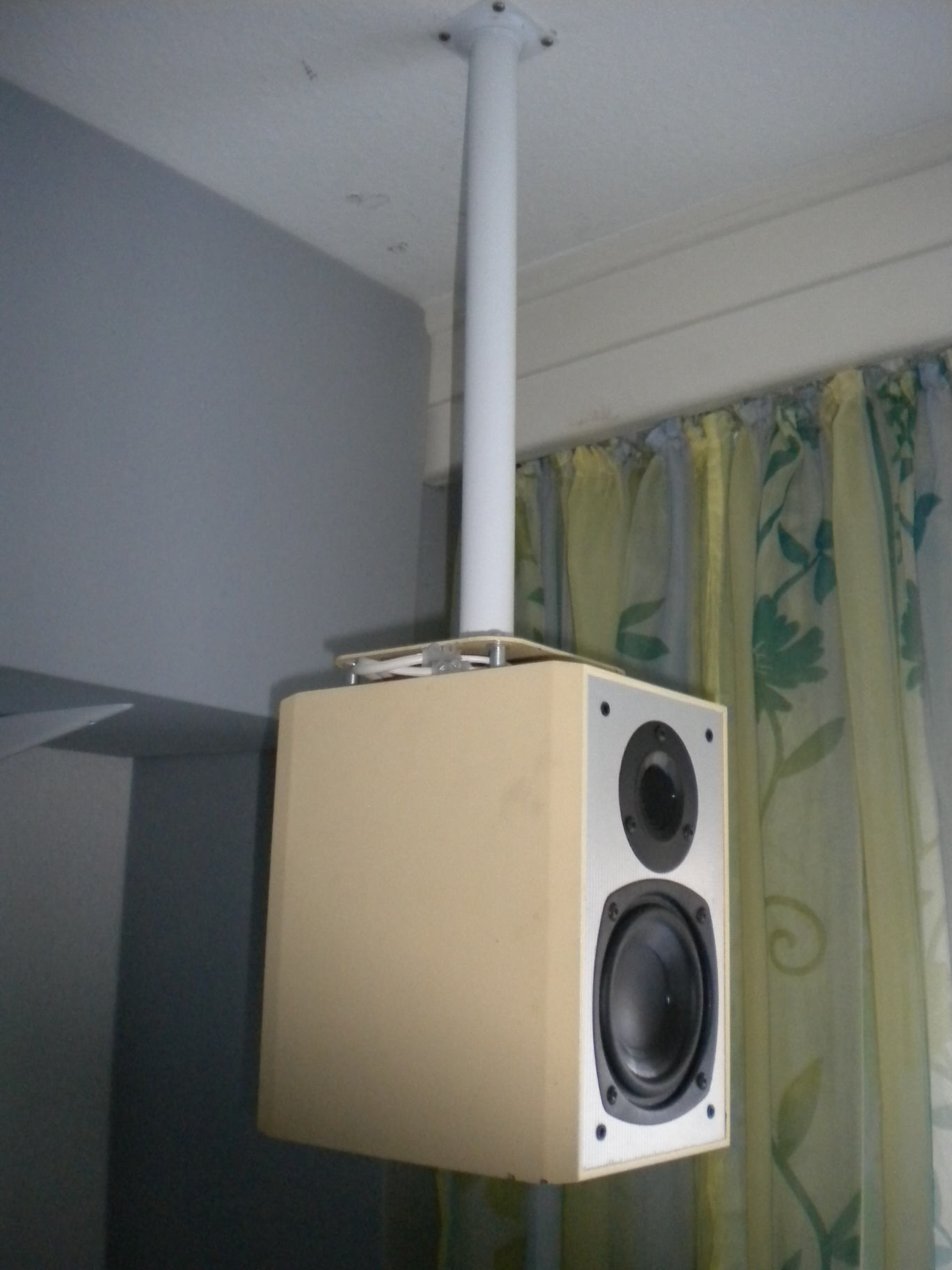 Es war schon lange mein Wunsch die Boxen nach Herstellerangagen zu montieren. 1,8m über dem Boden.