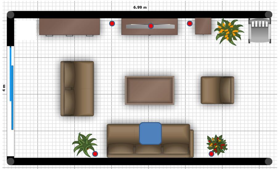 Verdamt, warum hast du vorne links nicht noch eine Pflanze stehen? Gedanke war, unter jeder Pflanze einen Sub zu stellen und mit einem DBA wirst du den Dröhnen wunderbar her werden. Würde nur gehen, vorne links einen AW-1300 und beim Rest kleine Subs. Soweit zu meinem Gedanken...