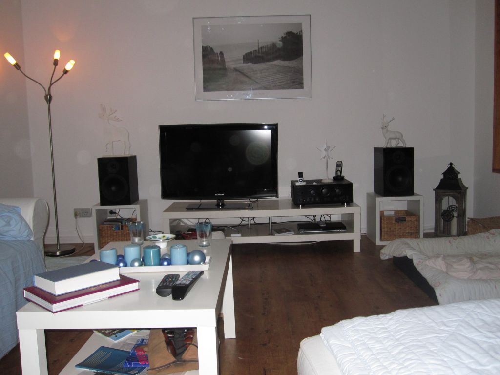 betrieben werden 2 nubox 381 mit einem Onkyo Integra 8850....die boxen stehen auf 2 ca 30cm hohen regaleinsätzen (also so offene würfel) ca. 30 cm von der rückwand weg....diese Dinger seht Ihr dann auf den Bildern....
