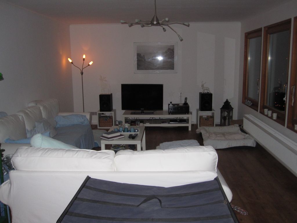 die Anlage wurde am schmalen Ende aufgebaut...der bevorzugte Hörplatz ist ca. 4 meter entfernt...Fotos folgen noch, muss die erst überspielen...