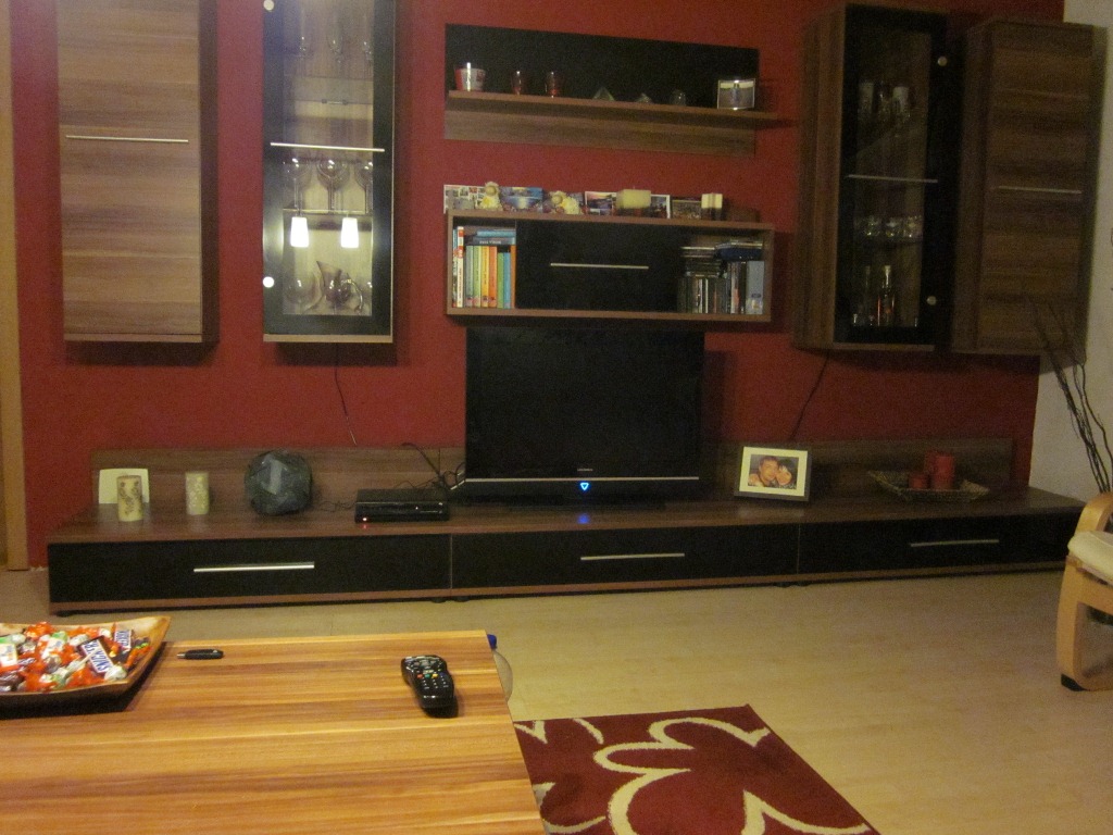 Das Ganze ist ja auch dann noch versetzt. D.h. der TV und die Front stehen ja auch für den Hörplatz nicht in halbwegs optimalem Stereodreieck. Es wäre eine versetzes spitzwinkliges Dreieck. Sehr ungünstig. Die Couch müsste eigentlich an die andere Seite...[/quote]
