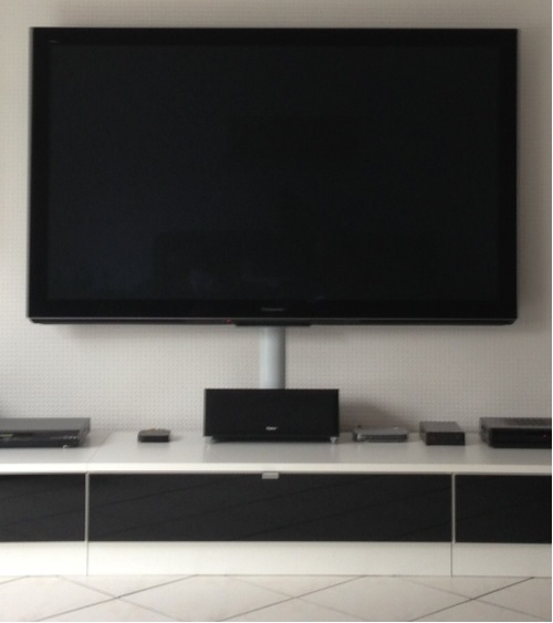 Das Problem ist, dass bei einem 65" Plasma nicht mehr viel Platz zwischen Lowboard und Fernseh ist. Ich mach mal gerade ein Foto....