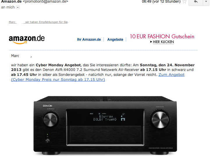 Obwohl ich noch gar keinen zweiten AVR brauche, habe auch ich am 17.11.2013 zugeschlagen und es mit einem günstigen Preis und der Möglichkeit eines zeitlich erweiterten Rückgaberechtes gerechtfertigt.